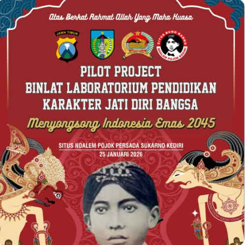 Kediri.Swara Wanita Net.-Menyongsong Indonesia Emas 2045 serta mendukung Asta Cita Presiden Republik Indonesia Prabowo Subianto, Situs Ndalem Pojok Persada Sukarno Kediri bersama lintas sektor Pemerintah Kabupaten Kediri akan meluncurkan program strategis bertajuk “Pilot Project Pembinaan dan Pelatihan (BINLAT) serta Laboratorium Karakter Jati Diri Bangsa.”