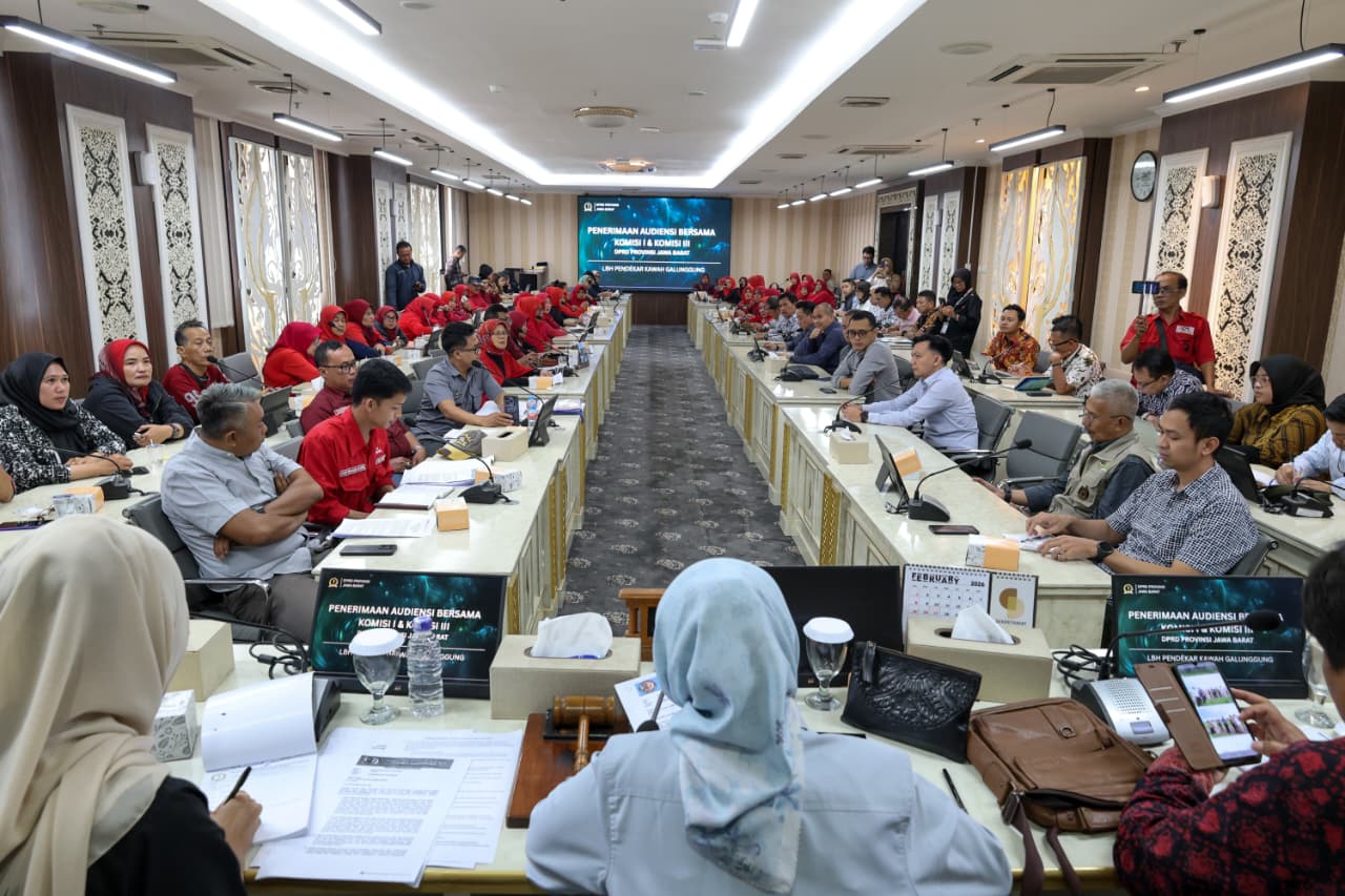 Audiensi diterima langsung oleh Anggota Komisi I DPRD Jawa Barat Rafael Situmorang dan Anggota Komisi III DPRD Jawa Barat Ineu Purwadewi Sundari dan Nia Purnakania di Ruang Badan Musyawarah (Banmus) DPRD Jawa Barat, Kota Bandung, Selasa (3/2/2026).