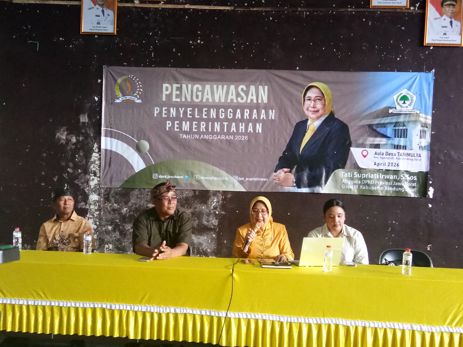 Bandung Barat.Swara Wanita Net.-Anggota DPRD Provinsi Jawa Barat Fraksi Golkar Tati Supriati Irwan, S.Sos melaksanakan kegiataan Penyelenggaraan Pengawasan Pemerintahan Tahun Anggaran 2026 bertempat di Aula Desa Tanimulya Kecamatan Ngamprah Kabupaten Bandung Barat. Sabtu (18/4/2026).